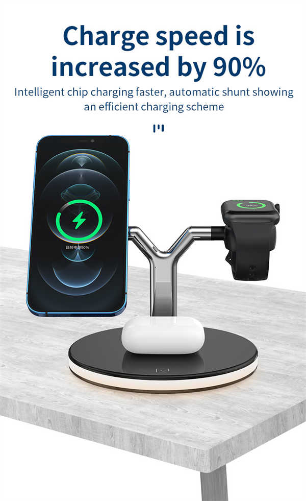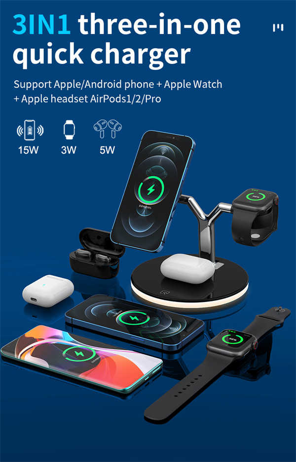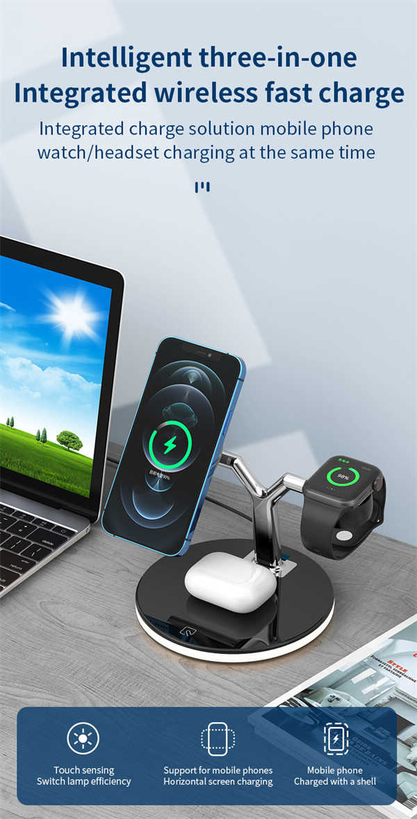 Die meisten modernen neuen Android-Ladegeräte verfügen über eine Selbststoppfunktion. Wenn der Akku des Mobiltelefons die Sättigung erreicht, stoppt das kabellose ladegeräte 3 in 1 automatisch die Stromversorgung, um die Auswirkungen einer Überladung auf die Akkulaufzeit zu vermeiden. Diese Funktion verlängert nicht nur die Lebensdauer der Batterie, sondern verringert auch Sicherheitsrisiken.