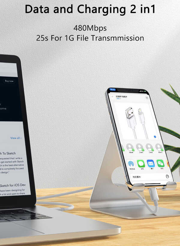 2. Unglaubliche Ladegeschwindigkeit: Drähte mit großem Durchmesser und reduziertem Kabelwiderstand maximieren die Ladegeschwindigkeit (unterstützt einen Ladestrom von bis zu 2,4 Ampere).