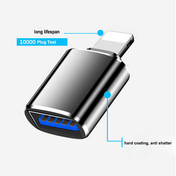Darüber hinaus verfügt der iPhone OTG Kabel auch über die Funktion der Datenübertragung. Über das Mini-USB-Ladekabel können Benutzer problemlos Daten von Mobiltelefonen auf Computer oder andere Geräte übertragen oder Daten von Computern auf Mobiltelefone übertragen. Diese Datenübertragungsfunktion ist in vielen Szenarien sehr nützlich, z. B. beim Sichern von Fotos, beim Übertragen von Dateien usw. Daher erleichtert die Datenübertragungsfunktion des USB-C-OTG-Kabels für Mobiltelefone unser Leben und unsere Arbeit erheblich.