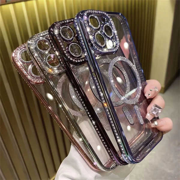 Esta funda para teléfono está hecha de material TPU transparente y respetuoso con el medio ambiente, no contiene ingredientes tóxicos y tiene un diseño 100% transparente, lo que le permite apreciar la belleza única del iPhone 15. Los bordes y la parte magnética tienen incrustaciones de diamantes sintéticos. que brillan deslumbrantemente bajo el sol, haciéndote destacar entre la multitud.