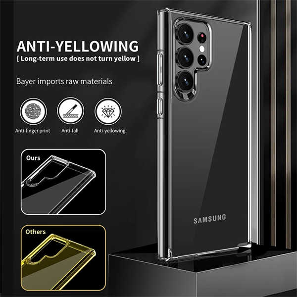 La technologie anti-jaunissement intégrée au matériau change la donne. Vous pouvez désormais profiter de la clarté immaculée de l’écran de votre Samsung S24 Ultra sans vous soucier du passage du temps. L'étui n'est pas seulement un accessoire ; c'est un investissement pour maintenir l'attrait visuel de votre appareil. Avec la coque ultra transparente Samsung S24 Ultra, vous pouvez présenter votre téléphone en toute confiance, sachant qu'il reste aussi clair que le jour où vous l'avez déballé.