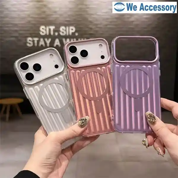 L’atout majeur de coque MagSafe iPhone 17 réside dans son esthétique unique. Ses rayures vibrantes et sa texture ondulée reproduisent à la perfection le relief d’une valise haut de gamme. Sous la lumière, la surface révèle instantanément un effet laser dégradé ou irisé dynamique : les couleurs évoluent selon l’angle de vue, telles des aurores boréales dansant délicatement sur la valise. Ce design confère téléphone une grande visibilité tout en alliant un toucher agréable à une excellente résistance aux traces de doigts, préservant ainsi sa propreté et son éclat durablement.
