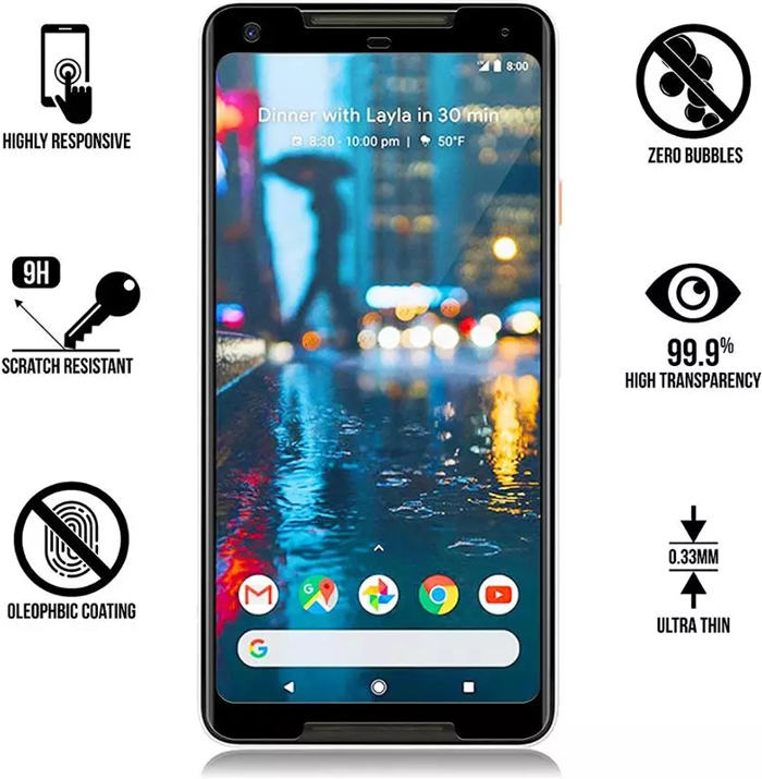 1. Pellicola protettiva per lo schermo in vetro temperato antigraffio e anti-impronta per Google Pixel 3 XL.