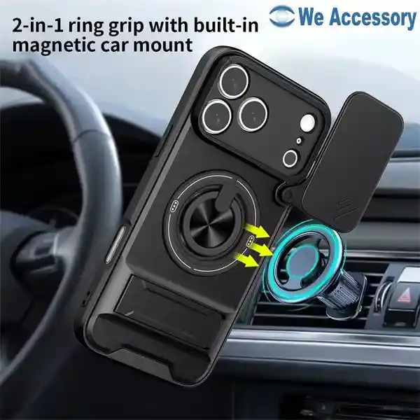 Oltre alla sua solida base protettiva, la custodia Armor 4 in 1 per iPhone 17 Pro offre funzionalità integrate ancora più impressionanti. L'anello magnetico ad alte prestazioni integrato nella custodia si integra perfettamente nell'ecosistema magnetico MagSafe di Apple, offrendo un'esperienza comoda e sicura sia con un caricabatterie wireless MagSafe che con un supporto magnetico per la navigazione in auto. Inoltre, un supporto metallico pieghevole a scomparsa nella parte inferiore della custodia consente di aprirla facilmente quando necessario, permettendo una visione a mani libere per streaming coinvolgenti, eventi sportivi o videochiamate in vivavoce.