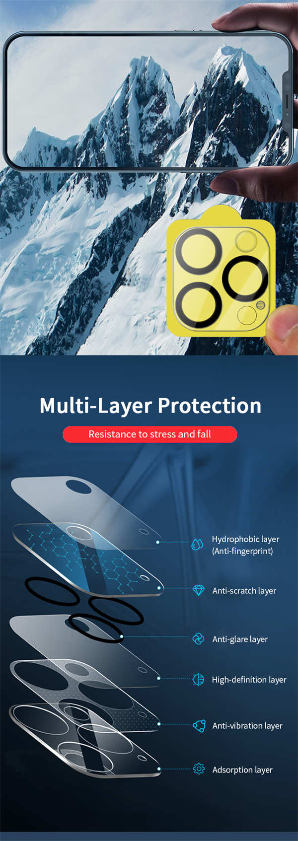 5. Facile installazione e allineamento senza bolle, facile da installare e senza bolle o appannamenti. Il design unico della nostra protezione per obiettivo scatta in posizione in modo preciso e sicuro.