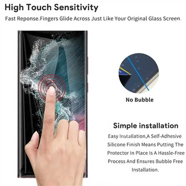 Inoltre, la superficie della moderna pellicola protettiva per schermo Samsung 3D S23 Ultra di alta qualità utilizza anche la tecnologia di rivestimento oleofobico e idrofobico, che rende lo schermo del telefono cellulare meno suscettibile alle impronte digitali e alle macchie di olio, garantendo così la pulizia e la nitidezza visiva dello schermo. Anche dopo un uso prolungato, basta pulirlo delicatamente per ripristinare la luminosità e la pulizia originali dello schermo.